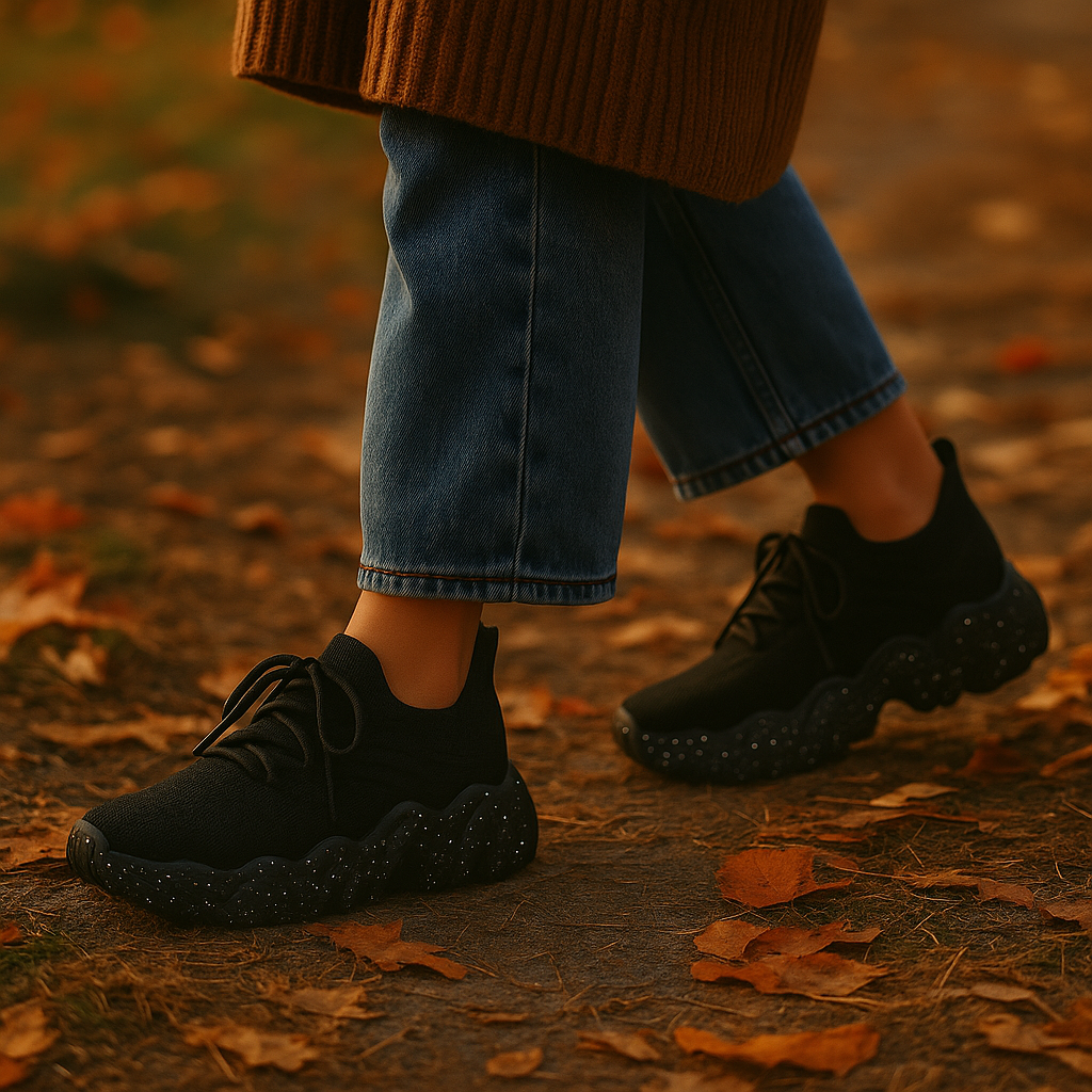 Unsere ultraleichte, flexible 3 cm-Cloud-Sohle fördert ein natürliches Gangbild und hilft, die richtige Fußausrichtung beizubehalten. Dieses Design reduziert effektiv häufige Beschwerden in Knien, Hüften, Rücken, Knöcheln und Füßen.